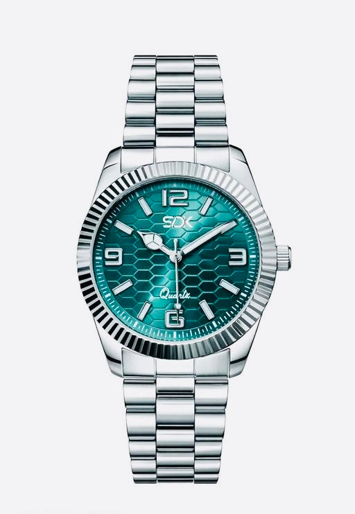 • Signature Dial: Unique emerald green face with a 3D honeycomb pattern.